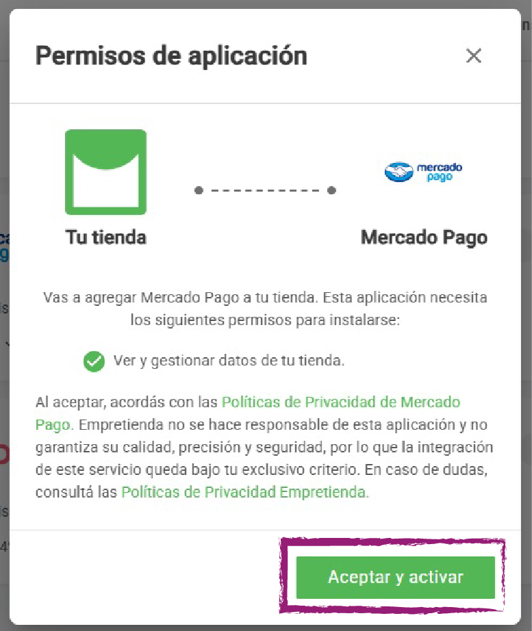 👉 Revisá los permisos y hacé click en Aceptar y activar.